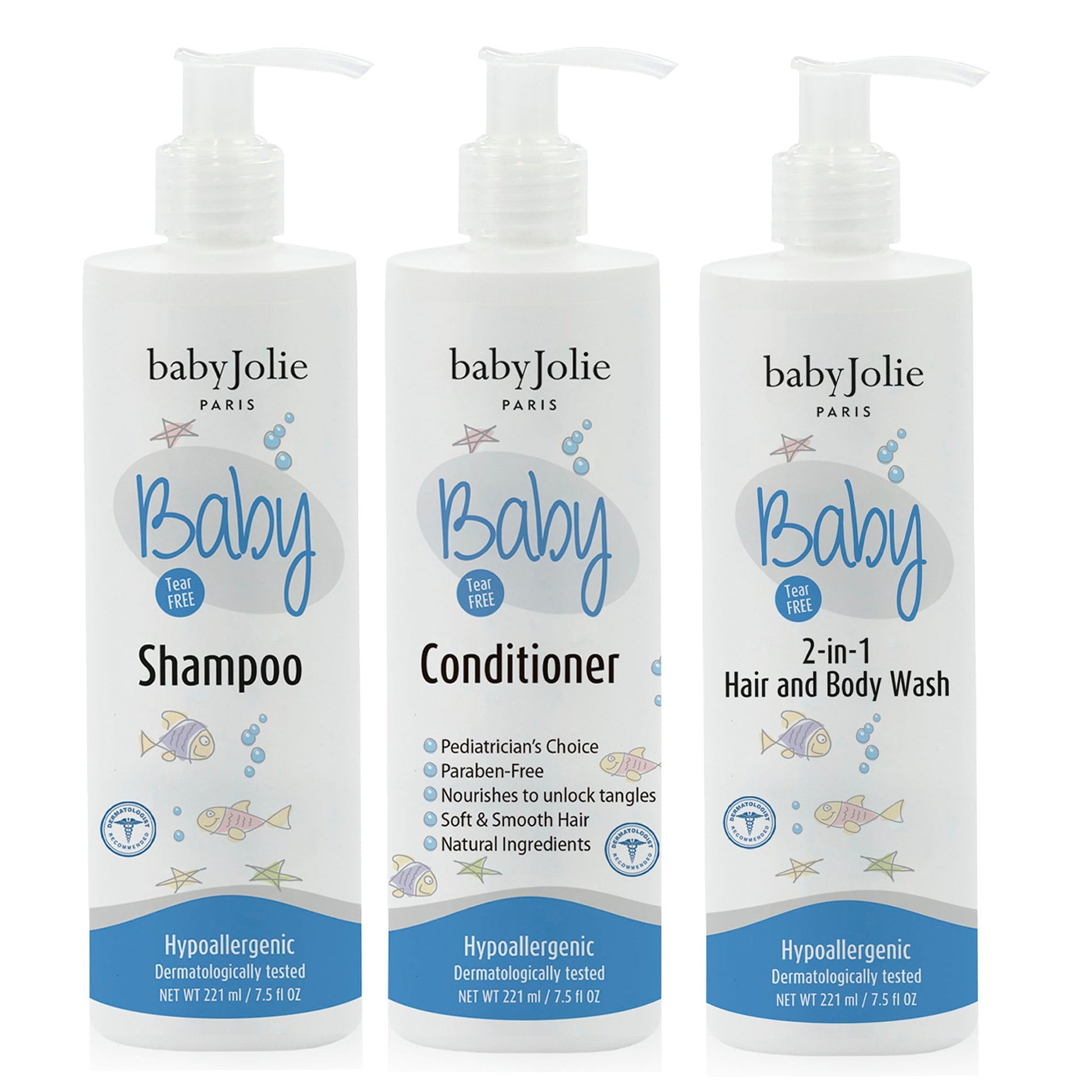 Enhance your baby's bath time with the Bathing Time Bundle. Baby Jolie Shampoo is a gentle formula that replenishes moisture and essential nutrients, leaving hair soft, shiny, and healthy. Its tear-free formula and easy rinse make bath time a breeze. Paired with Baby Jolie Conditioner, which fights frizz and keeps hair smooth and manageable, this bundle is perfect for newborns and toddlers.