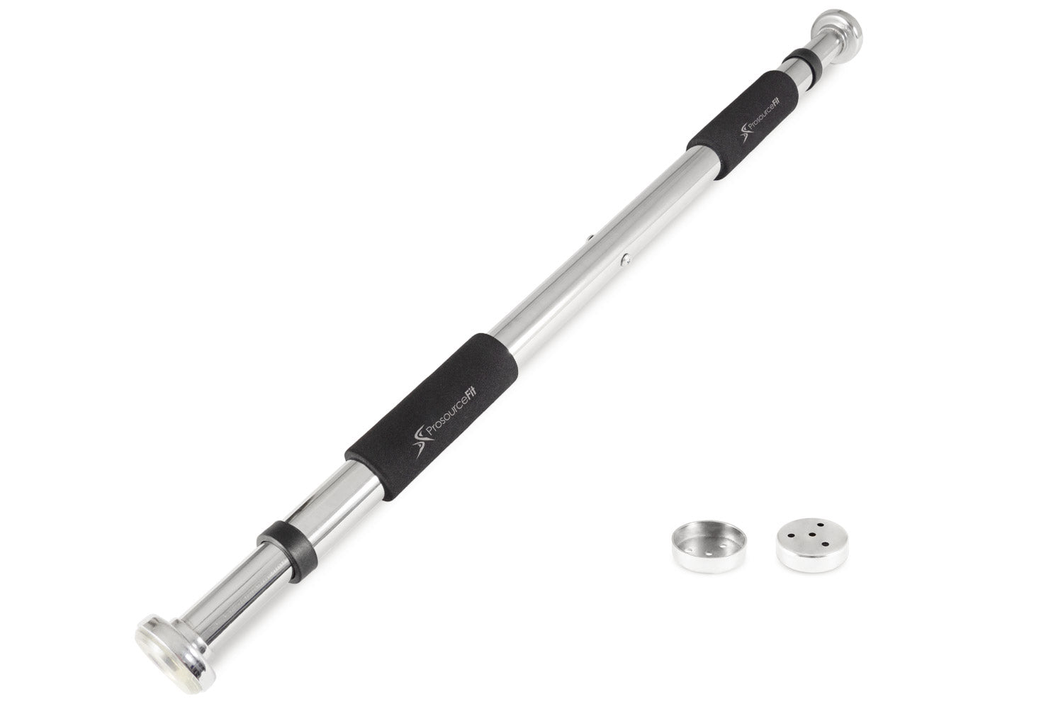 Improve your upper body and core conditioning with the adjustable ProsourceFit Doorway Pull-up Bar that allows you to work out in the comfort and privacy of your own home. This simple piece of exercise equipment equips your home for quick yet effective workouts to strengthen your entire upper body. Mount high for pull-ups and chin-ups, or low as an anchor for sit-ups and core strengthening. The adjustable ProsourceFit Doorway Pull-Up Bar fits any standard doorframe and holds up to 220 lb. Two soft foam grips provide a comfortable place for your hands and help prevent slipping. Comes with all necessary mounting hardware.