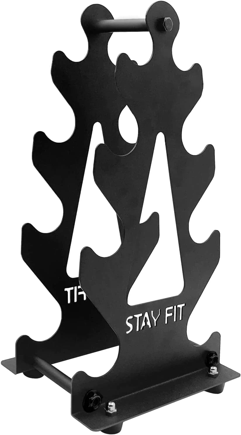 - STAY FIT SLOGAN Keep your dumbbells off the floor, neatly stored, and easily accessible. This will make your workout experience all the more enjoyable. Most dumbbell steel racks on the markets are lack of design and make it just ugly and dull metal stuff for users. We want to break the grounds and offer our customers with sleek and robust products for you. We finally picked out STAY FIT laser-cutting slogan to encourage you and we hope every user can embrace their happy self-displine life.