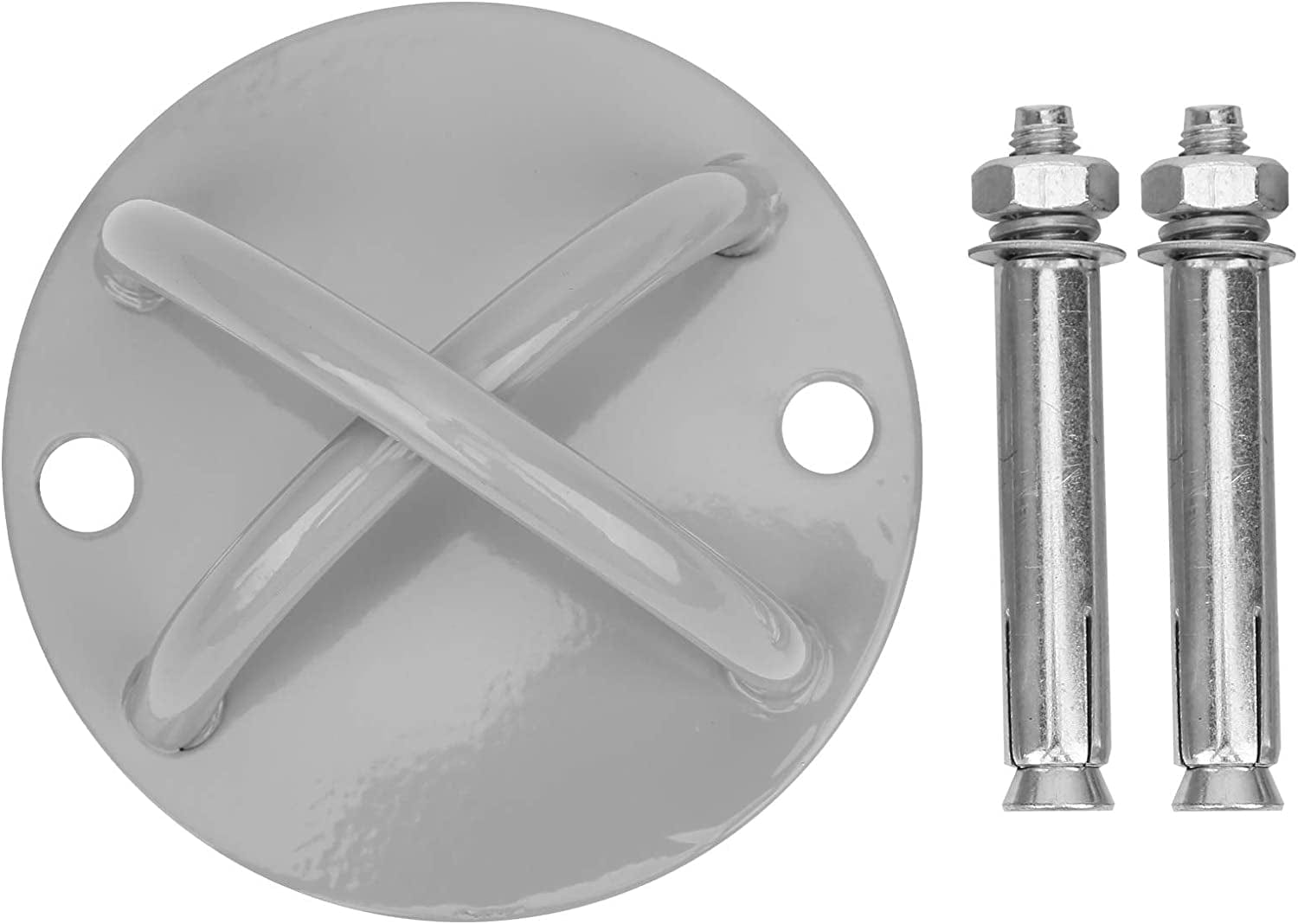 Item Type: Aerial Yoga Fixed PlateMaterial: IronColor: Silver WhiteProduct Diamater: Approx. 12cm/4.7inWeight: Approx. 630.0g/22.2ozQuantity: 1SetStyle: 2Pcs Holes
