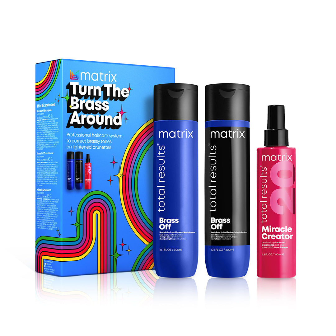 Keep Your Cool this season with the Brass Off Gift Set by eliminate brassy tones and enhancing your color.